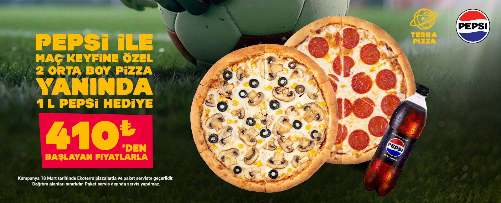 Seçeceğiniz 2 Adet Orta Boy Pizza + Litrelik İçecek (Ekoterra pizzalar için geçerlidi...
