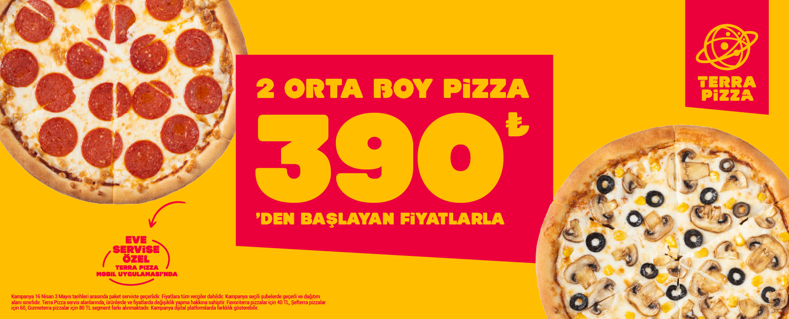 2 Orta Boy Pizza Menü