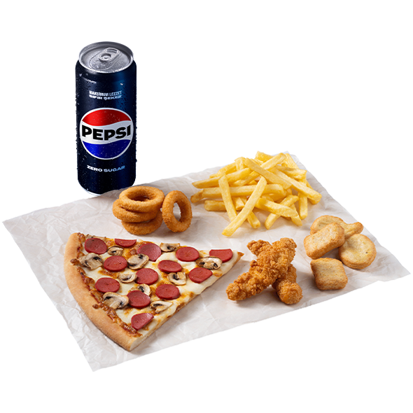 Büyük Dilim Pizza, Patates Kızartması, 2 Adet Chicken F...